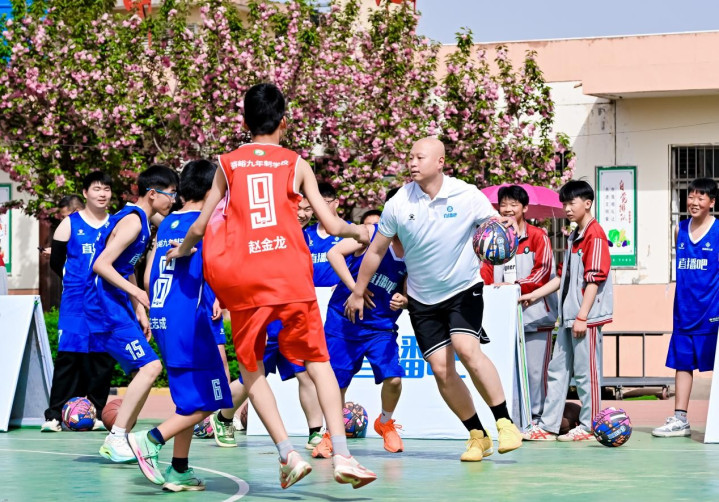 活动现场气氛热烈。体育达人张晓松以其独特的“趣味+严苛”训练方式,迅速点燃了孩子们的参与热情。西北工业大学的队员们与骆峪学校的学生们组成的友谊赛更是将活动推向高潮,大学生球员们的精湛球技和耐心指导,让孩子们近距离感受到了篮球的魅力。